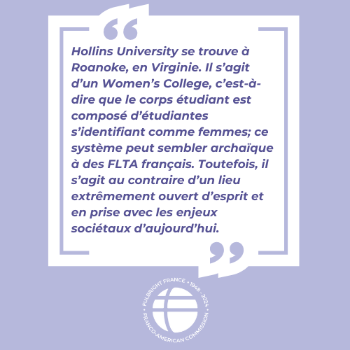 La Commission franco-américaine Fulbright France, en partenariat avec l'Institute of International Education, propose aux étudiants français - titulaires d'au moins une licence - entre 23 et 25 postes d'assistants de langue française aux Etats-Unis. Les placements sont proposés au niveau universitaire, sur l'ensemble du territoire américain et délibérément à l'écart des destinations les plus connues. Les lauréats suivent aussi deux cours à l'université dont ils dépendent, pour lesquels ils sont exemptés des frais de scolarité. L'un de ces cours sera obligatoirement lié à l'histoire, la littérature ou la civilisation américaines. Les lauréats retenus pourront ainsi développer une meilleure connaissance des Etats-Unis, contribuer à la promotion de la langue et de la culture françaises, enrichir leurs compétences linguistiques, et bénéficier d'une riche expérience académique, culturelle et professionnelle.